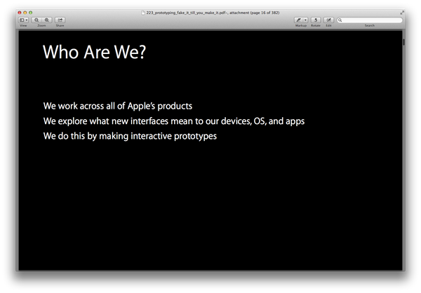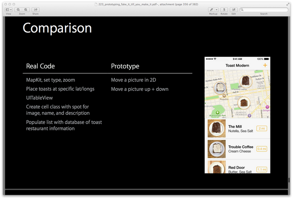 这来自于WWDC 2014 Session Videos里有个视频Prototyping: Fake It Till You Make It ,就是他们指导如何用Keynote做出逼真的交互原型的,这段我也是刚看到,其实一直想补到之前的答案里。下面结合这个视频的截图可以介绍下他们是怎么充分发挥Keynote的特点的。